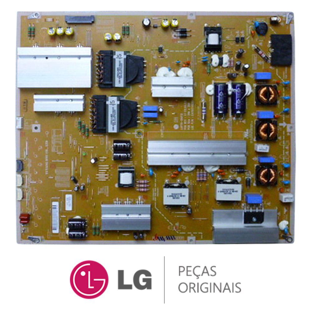 A Placa Fonte da TV Lg, conhecida também como PCI Fonte de Alimentação é responsável por energizar todos os outros componentes do televisor, geralmente o cabo de força é plugado diretamente nela. Em resumo, é essa peça que faz a TV ligar! Normalmente a placa fonte é danificada quando ocorre oscilação de energia, ou descarga elétrica. Por isso aconselhamos retirar sua TV da tomada em dias chuvosos.