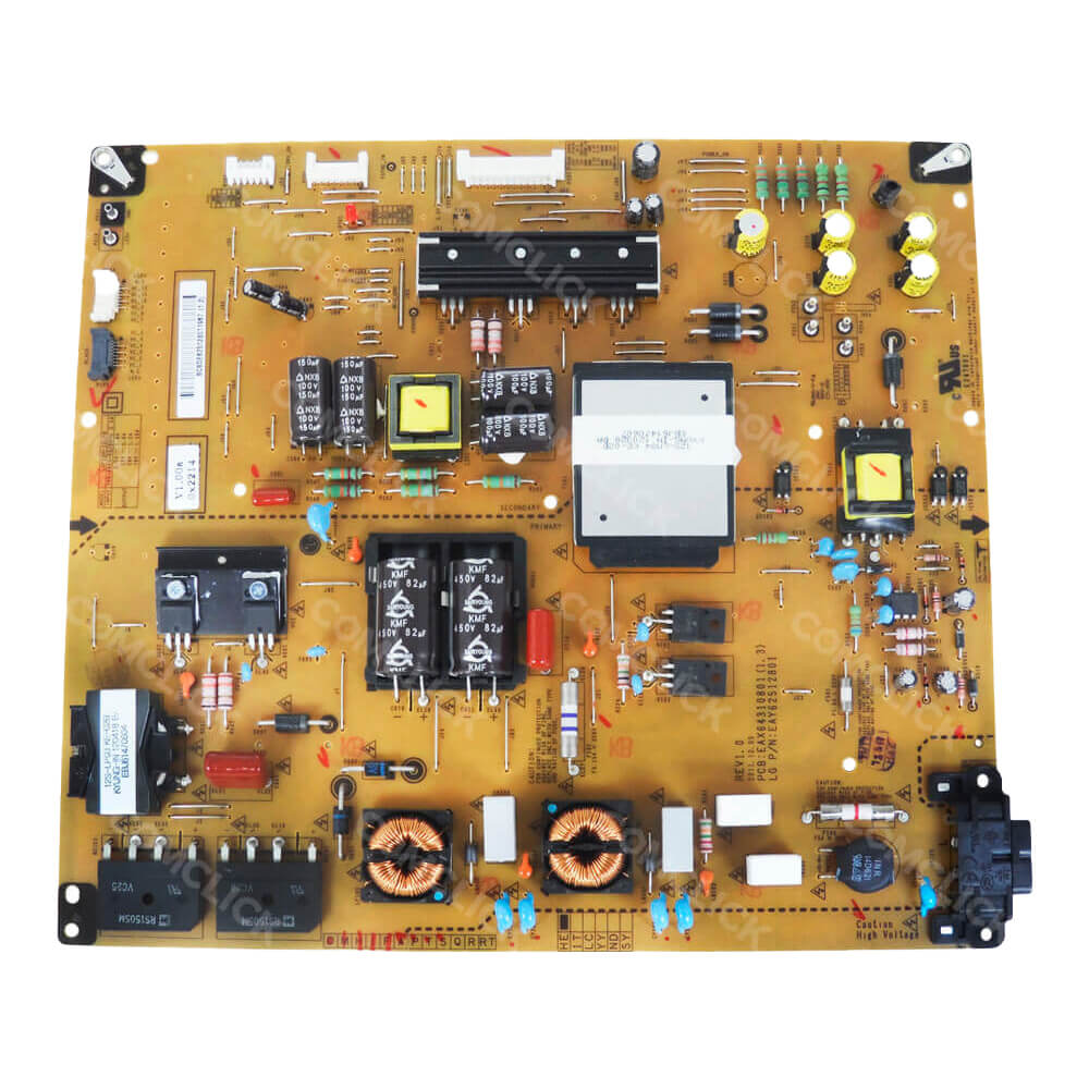 A Placa Fonte da TV Lg, conhecida também como PCI Fonte de Alimentação é responsável por energizar todos os outros componentes do televisor, geralmente o cabo de força é plugado diretamente nela. Em resumo, é essa peça que faz a TV ligar! Normalmente a placa fonte é danificada quando ocorre oscilação de energia, ou descarga elétrica. Por isso aconselhamos retirar sua TV da tomada em dias chuvosos.