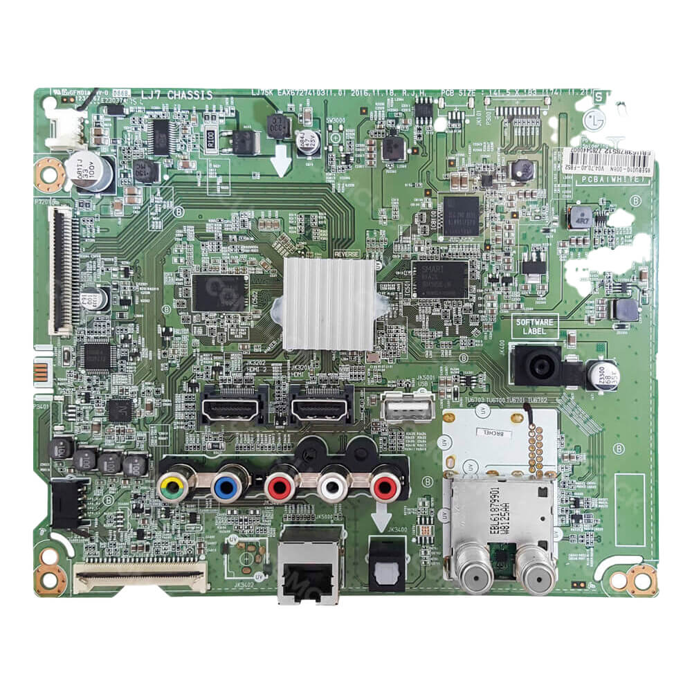 PLACA PRINCIPAL PARA TV LG PROCEDÊNCIA: NOVO / ORIGINAL APLICAÇÃO: COMPATÍVEL COM OS MODELOS DE TV LG: 32LJ600B.AWZ CÓDIGOS COMPATÍVEIS: EAX67274103